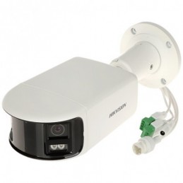 DS-2CD2T87G2P-LSU-SL este o camera IP, de 8MP (5120x1440) de la Hikvision, formata din 2 obiective care preiau imaginile si le suprapun partial pentru a forma o imagine panoramica (180°).
