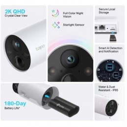TP-Link camera Supraveghere WIFI, wireless TAPO C420S1, Senzor: 1/3", Rezolutie: 2K QHD (2560 × 1440 px), obiectiv: F/NO: 1.61±10%; Focal Length: 3.18mm±5%, Unghi de Vizualizare: 113°, Night Vision: IR 15m, 2- way audio, microfon si difuzor integrat