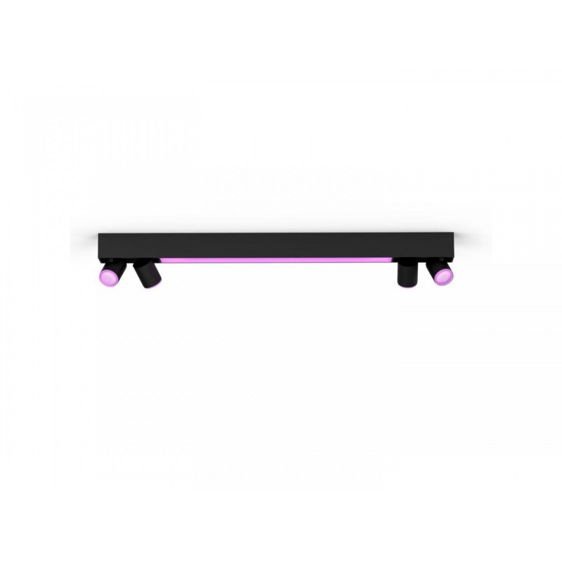Spot LED RGB Philips Hue Perifo, kit de baza, 3 spoturi, Bluetooth, control vocal, 24V, lumina alba si color (2000-6500K), IP20, 150.4cm, Negru