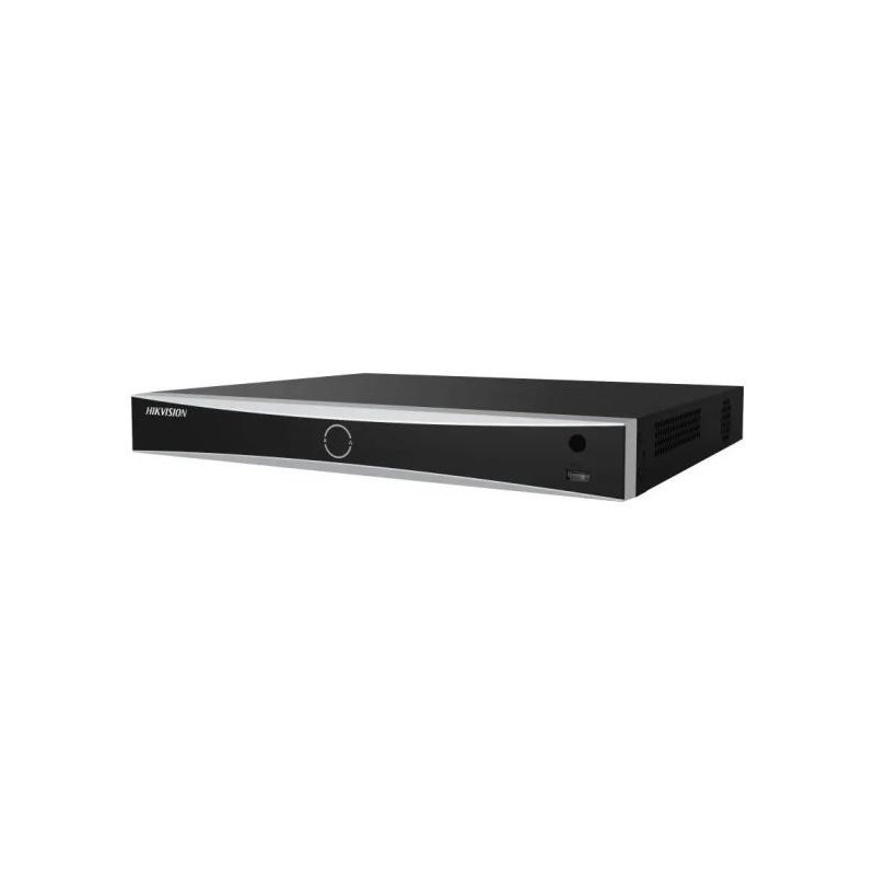 NVR 8 canale Hikvision DS-7608NXI-I2/8P/S, 4K, 8 x POE, Acusens: - Facial detection and analytics: Face picture comparison, human face capture, face picture search; Face picture library: Up to 16 face picture libraries, with up to 10,000 face pictures in total (each picture≤ 512 KB, total capacity ≤ 150 MB); Face picture comparison: 4-ch face picture comparison alarm; Performance of facial detection and analytics: 1-ch human face capture (HD network camera, up to 8 MP, H.264/H.265); Human/Vehicle analysis: Up to 4-ch 2 MP (H.264/H.265) video analysis for human and vehicle recognition to reduce false alarm; IP video input: 8ch pana la 12MP, decoding: 16-ch@1080p (30 fps); Incoming/Outgoing bandwidth: 80 Mbps/256 Mbps; iesiere HDMI: 4K (3840 × 2160)/60Hz, VGA/CVBS; interfata audio: 1 x iesire audio, RCA, compresie: H.265+/H.265/H.264+/H.264/MPEG4; interfata reea: 1 x RJ-45 10/100/1000 Mbps self-adaptive Ethernet interface; 2 x interfata SATA pana la 10TB per canal, alarme in/out: 4/1; 1 × USB 2.0, 1 × USB 3.0, alimentare: 8 x POE RJ-45 10/100 Mbps self-adaptive Ethernet interface; 1U chassis; dimensiuni: 385 × 315 × 52 mm; greutate: 2.7 kg