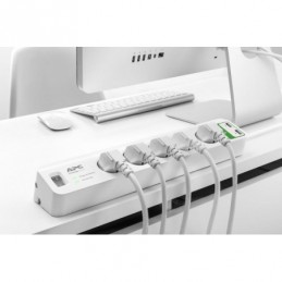 Prelungitor cu protectie Serioux, 6 prize schuko, input 100-240V, 50- 60Hz, output (Total): 2500W - 10A, 4 porturi USB, 4 porturi USB (5V- 3.1A) (Auto Max) 17W, Amperaj port USB (max) 3.4A, functie auto ID, antistatic, buton power/off, lungime cablu 2m,ne
