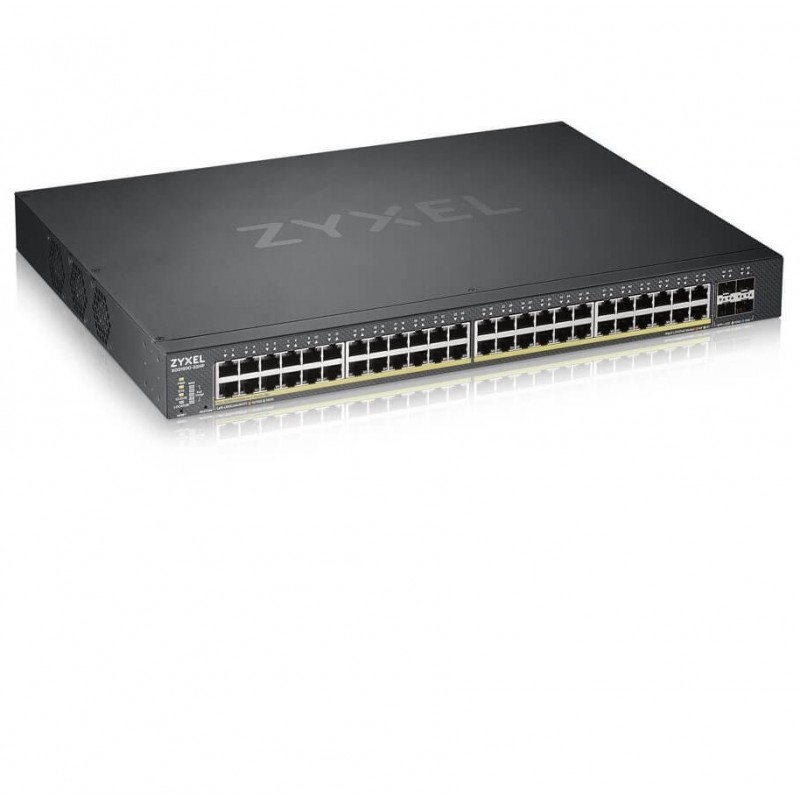 Zyxel GS192024HPV2 24-port GbE Smart Managed POE Switch 4x GbE combo (RJ45/SFP) ports, 24 x POE ports.
