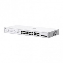 Switch TP-Link cu 28 de porturi, 24× Gigabit 802.3af/at PoE+ ports si 4× Gigabit SFP slots, capacitate switch 56 Gbps, dimensiuni 17.3×8.7×1.73 in (440×220×44 mm)