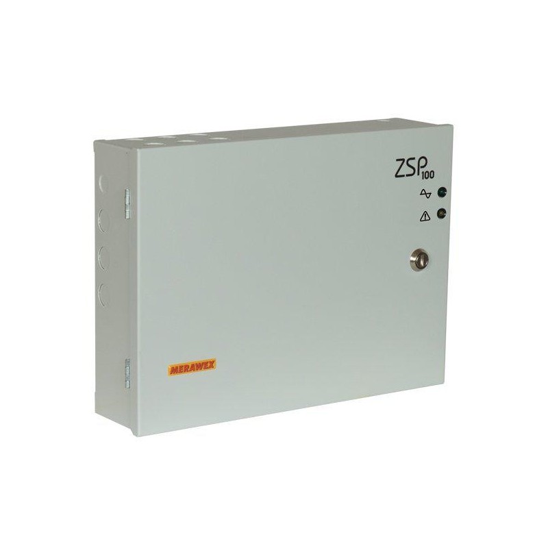 Sursa de alimentare pentru sisteme de detectie incendiu 24V/5.5A in cutie metalica Merawex ZSP100-5.5A-07 , loc pentru 2 acumulatori 12V/9Ah, Tensiune de intrare: 100/230VAC, eficienta ridicata sub sarcina si consum redus, comunicare RS-232 / RS-485, rata scazuta de esec (0,5% in trei ani), iesiri asigurate cu sigurante separate, Indicator LED al starii de functionare a sursei de alimentare, semnalizare la distanta: defectiune de retea si defect baterie (trei contacte releu disponibile pentru fiecare tip), intrare de alarma externa, protectie la suprasarcina a circuitelor de iesire si a bateriilor, impotriva inversarii polaritatii bateriei, dimensiuni: 340 × 250 × 80 mm, greutate: 3.3kg. Sursele sunt certificate EN 54-4, EN 12101-10