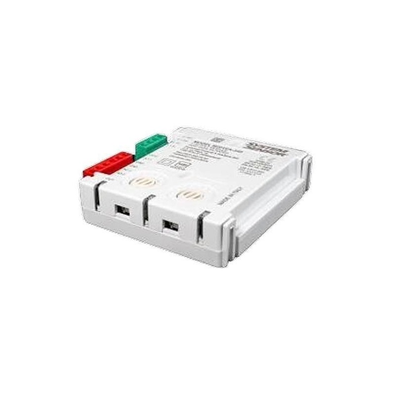 Modul de comanda adresabila - 3 intrari/6 iesiri. Permite producerea si transmiterea unui semnal electric catre dispozitive externe, ex: actuatoare, trape desfumare, lifturi, usi, etc. Izolator inclus. Alimentare din bucla de alimentare.