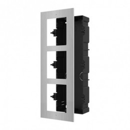 Suport module interfon Hikvision. Pot fi montate 3 module, montaj ingropat, rama din otel si doze din plastic.