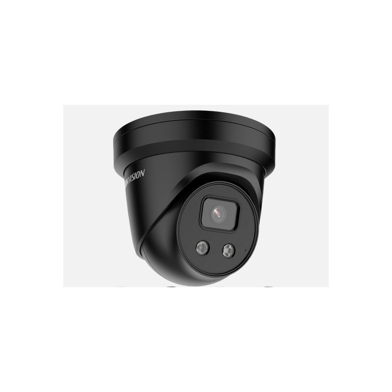 Camera supraveghere Hikvision IP turret DS-2CD2383G2-IU(2.8mm)BLACK, 8MP, culoare neagra, Acusens - filtrarea alarmelor false dupa corpul uman si masini, microfon audio incorporat, senzor 1/2.8" Progressive Scan CMOS, rezolutie 3840 × 2160@20fps, iluminare Color: 0.005 Lux @ (F1.6, AGC ON), B/W: 0 Lux cu IR, lentila 2.8mm, distanta IR 30m, 120 dB WDR/IR cut filter/BLC/HLC/3D DNR, Smart feature: Face detection, line crossing detection, intrusion detection, supports human and vehicle targets classification, compresie H.265+, triple streams, slot microSD/SDHC/SDXC pana la 256 GB, retea 1 RJ45 10 M/100 M self-adaptive, alimentare 12 VDC si PoE, IP67, temperatura de functionare -30 °C la 60 °C, dimensiuni Ø 127.3 mm × 95.9 mm, greutate 600 g. Accesorii optionale: DS-1271ZJ-130-TRL, DS-1275ZJ-SUS, DS-1281ZJ-M, DS-1273ZJ- 130B-TRL, DS-1276ZJ-SUS, DS-1280ZJ-DM8, DS-1273ZJ-130-TRL