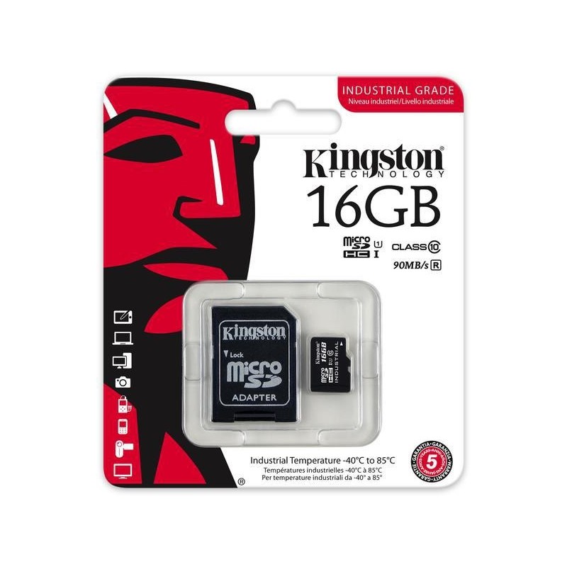 Micro Secure Digital Card Kingston, 16GB, SDCIT/16GB, Clasa 10, R/W 45/10 MB/s, cu adaptor SD, industrial temp -40°C to 85°C (pentru telefon)