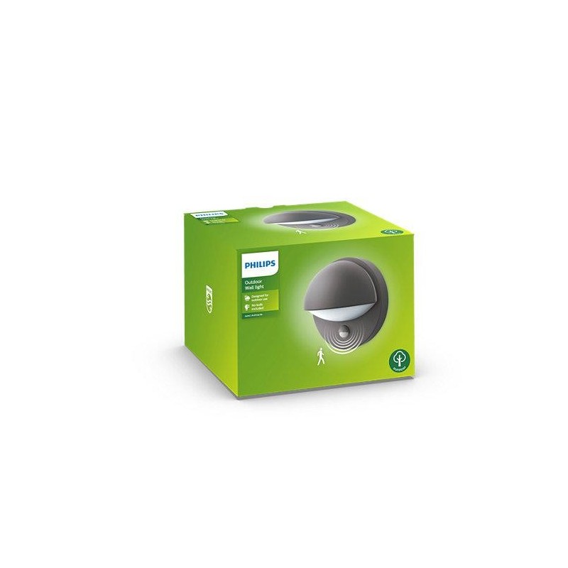 Aplica LED pentru exterior cu senzor de miscare Philips Stock, 6W (47W), 600 lm, lumina calda (2700K), IP44, 88x180x246mm, Antracit