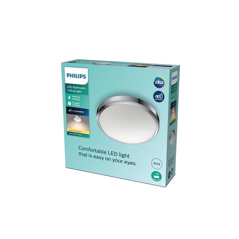 Plafoniera LED Philips Doris CL257, 17W, 1500 lm, lumina calda (2700K), IP44, 31.3cm, Nichel