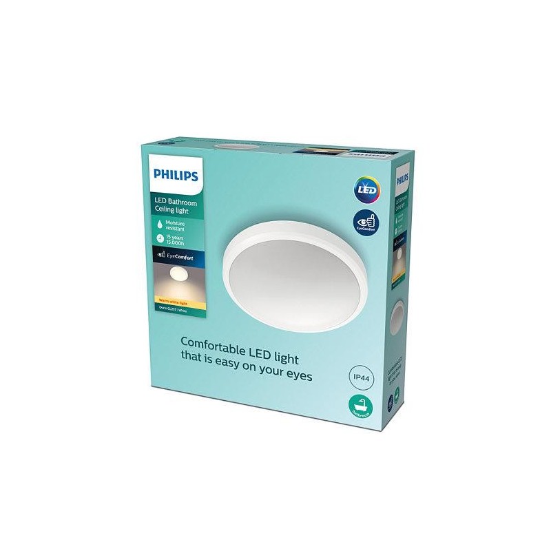 Plafoniera LED Philips Doris CL257, 6W, 600 lm, lumina calda (2700K), IP44, 22cm, Nichel