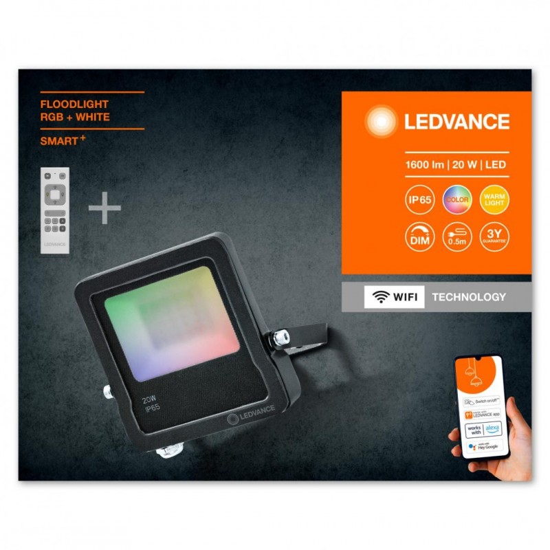 Proiector LED cu senzor de miscare si lumina Ledvance FLOODLIGHT PERFORMANCE, 20W, 100-277V, 2400 lm, lumina neutra (4000K), IP65/IK07, 176x156x55mm, aluminiu, Negru