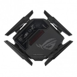 Router Asus Quad-Band ROG Rapture GT-BE98, WIFI-7, Standarde wireless: WiFi 6 (802.11ax), WiFi 7 (802.11be), IEEE 802.11a, IEEE 802.11b, IEEE 802.11g, IEEE 802.11n, IEEE 802.11ac, IPv4, IPv6, Segment Produs: BE25000, Viteza wireless: 1376+5764+5764+11529 Mbps, 8 x antene externe, Procesor: 2.6GHz quad-core, Memorie: 256 MB Flash and 2 GB RAM, Frecvente: 2.4 GHz / 5 GHz / 6 GHz, Interfata: 1 x 10Gbps for WAN/LAN 1 x 2.5Gbps for WAN/LAN, 1 x 10Gbps for LAN, 3 x 2.5Gbps for LAN, 1 x RJ45 10/100/1000Mbps for LAN, 1 x USB 3.2 Gen1, 1 x USB 2.0