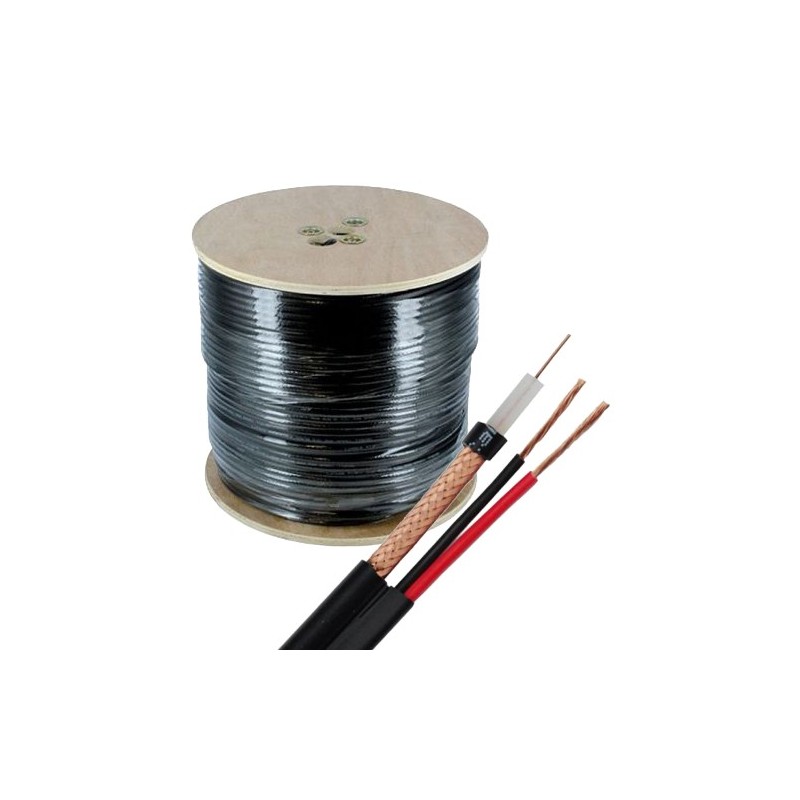 Cablu coaxial RG59 + 2 fire alimentare 0.75, invelite in camasa de protectie. FIR CENTRAL CUPRU 100%. Ideal pentru infrastructurile de televiziune cu circuit inchis TVCI (CCTV, CTV).