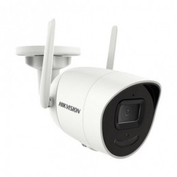 Camera de supraveghere video IP Hikvision, Wi-Fi dual antenna, distanta comunicare de lana la 120 metri in camp deschis, rezolutie 4MP (2560×1440)@25fps, compresie H.265+/H.265/H.264, lentila 2.8mm, unghi vizualizare 97°, distanta IR max. 30m, stocare SD card max. 256Gb, alarma flash si sonora integrata in corpul carcasei.