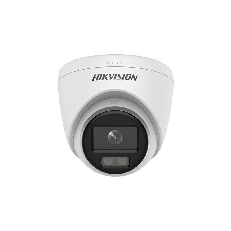 Camera supraveghere Hikvision IP turret DS-2CD1347G0-L(2.8mm), 4MP, ColorVu lite - imagini color 24/7 (color pe timp de noapte), senzor: 1/2.7" Progressive Scan CMOS, rezolutie: 2560 × 1440 20fps, iluminare: Color: 0.001 Lux @ (F1.0, AGC ON), lentila: 2.8mm, unghi vizualizare: horizontal FOV 102°, vertical FOV 54°, diagonal FOV 121°, distanta lumina alba: 30m, BLC/HLC/3D DNR, compresie: H.265+, interfata retea: 1 RJ45 10M/100M self-adaptive Ethernet port, alimentare: 12 VDC si POE 802.3af, IP 67, temperatura de fucntionare: -30 °C to 60 °C, dimensiuni: Ø 110 × 100.8 mm, greutate: 350 g
