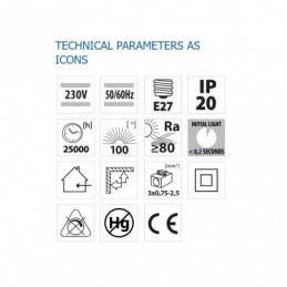 Corp iluminat emergenta, iluminat nepermanent, buton TEST, intrerupator ON/OFF, acumulator (Li-Ion)- 3.7V/1,4Ah, autonomie reglabila (High/Low)- min. 6/max. 8h, timp de reancarcare 16/24h, alimentare- 230V, IP20