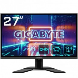 Monitor Gigabyte G27Q Gaming Monitor Panel Size (diagonal) 27" IPS Display Viewing Area (HxV) 596.74 x 335.66 (mm) Panel Backlight/ Type Edge type Display Surface(non-glare/ glare) Non-glare Color Saturation 92% DCI-P3 / 120% sRGB True Resolution 2560 x 1440 (QHD) Pixel Pitch 0.2331*0.2331 Brightness 350 cd/m2 (TYP) Contrast Ratio 1000:1 Dynamic Contrast Ratio 12M:1 Viewing Angle 178°(H)/178°(V) Display Colors 8 bits Response Time 1ms (MPRT) Refresh Rate 144Hz HDR VESA Display HDR400 Flicker-free Yes Signal Input HDMI 2.0 x2, Display port 1.2 x1 Earphone Jack Yes Speaker 2W x2 USB port(s) USB 3.0 x2 Power Type Power adapter Power Consumption 65W(Max) Power Saving Mode 0.5W Power Off Mode 0.3W Voltage 19VDC 3.42A Tilt(angle) -5°~+20° Height Adjustment (mm) 130mm VESA Wall Mounting(mm) 100*100mm Kensington lock Yes Phys. Dimension with Stand(WxHxD) 619.04*518.88*202.97 Phys. Dimension w/o stand (WxHxD) 619.04*365.526*56 Box Dimension (WxHxD) 737*218*495mm Net Weight (Esti.) 6.7 Gross Weight (Esti.) 9.7 Accessories Power cable/HDMI cable/DP cable/ USB cable/QSG/Warranty card https://www.gigabyte.com/Monitor/G27Q/sp#sp