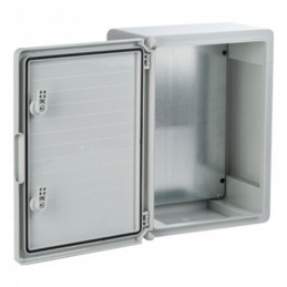 Confectionata din ABS gri si usa mata, permite realizarea conexiunilor precum si montarea unor echipamente in mediul exterior. Montare aparenta cu ajutorul clemelor incluse. Contraplaca metalica galvanizata inclusa. Certificare TUV Rheinland.