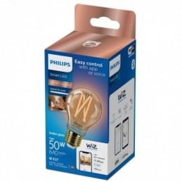 Bec LED RGB inteligent WiZ Connected Filament Clear G95, Wi-Fi, E27, 6.3W (40W), 470 lm, lumina alba si color (2200-6500K), compatibil Google Assistant/Alexa/Siri