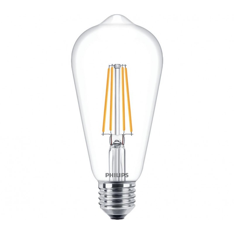 Bec LED vintage (decorativ) Philips Classic Gold Giant T65, EyeComfort, E27, 6.5W (40W), 470 lm, lumina calda (2000K), dimabil, cu filament, 27.3x6.5cm