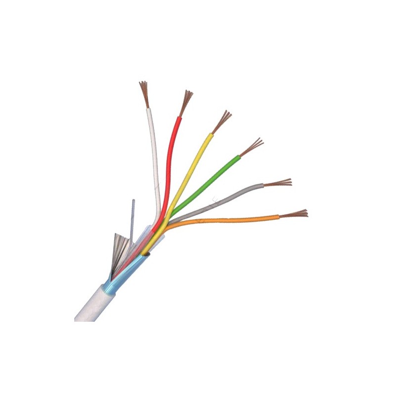 Cablu de alarma 6 fire, ecranate Cupru 100%6 fire x 0.22 -Cu 100%, diametru exterior 4.4 mm, ecranaj. Include fir de sectionare camasa PVC.Rezistent la flacara - CEI20-22, IEC60332 I-II-IIIAmbalare la rola de 100 metri. (RoHS)
