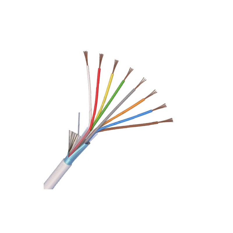 Cablu de alarma 8 fire, ecranate8 fire x 0.22, diametru exterior 5.0 mm, ecranaj. Include fir de sectionare camasa PVC.Ambalare la rola de 100 metri in cutie de carton special conceputa pentru derulare. ( RoHS )