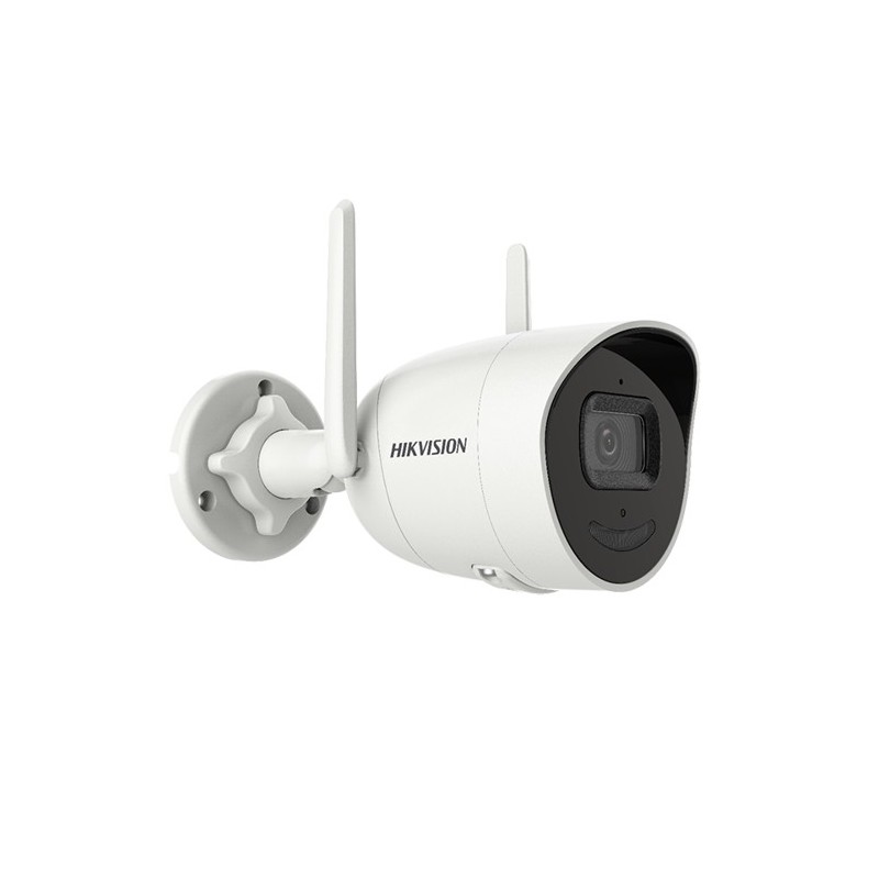 Camera de supraveghere video IP Hikvision, Wi-Fi dual antenna, distanta comunicare de lana la 120 metri in camp deschis, rezolutie 4MP (2560×1440)@25fps, compresie H.265+/H.265/H.264, lentila 2.8mm, unghi vizualizare 97°, distanta IR max. 30m, stocare SD card max. 256Gb, alarma flash si sonora integrata in corpul carcasei.
