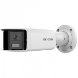 DS-2CD2T46G2P-ISU-SL este o camera IP, de 4MP (3040x1368) de la Hikvision, formata din 2 obiective care preiau imaginile si le suprapun partial pentru a forma o imagine panoramica (180°).