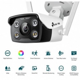Indoor/Outdoor Pan/Tilt Security Wi-Fi Camera SPEC: 1080p, 2.4 GHz, Horizontal 360º FEATURE: Pan/Tilt, Smart Detection and Notifications (motion, people, baby crying), Motion Tracking, Sound and Light Alarm, Remote Control, Two-Way Audio, Voice Control (W