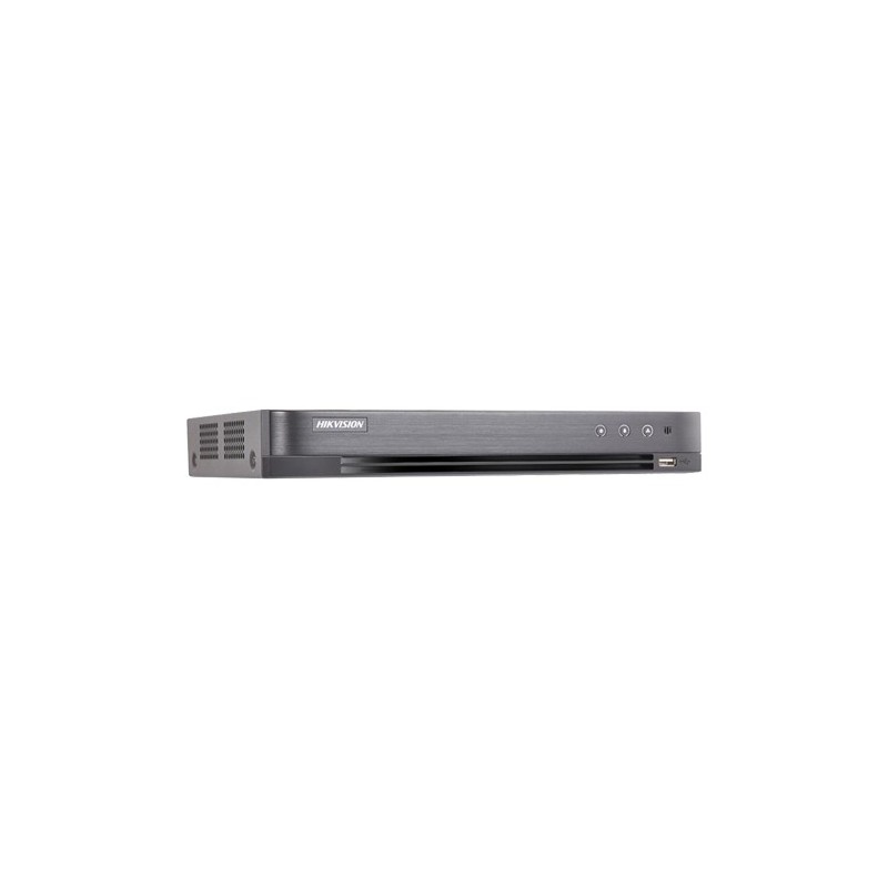 Inregistrator video digital Hikvision, compresie H.265 Pro+, suporta 4 camere analogic HD cu rezolutie de pana la 5 MP + 2 canale IP (pana la 8 canale) cu rezolutie max. 8MP, analiza video VCA, detectie miscare 2.0 pe toate canalele, trecere linie, Smart Playback, semnal compatibil HDTVI/ HDCVI / AHD / CVBS, iesire HDMI / VGA - 4MP/1080P, 4 intrari audio HDTVI over coaxial, 1 intrare audio analogica, capacitate stocare HDD pana la 10T (neinclus).