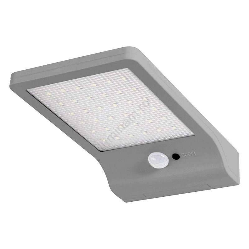 Aplica LED pentru exterior, solara cu baterie Li-ion, cu senzor de miscare si lumina Ledvance DOORLED SOLAR, 3W, 3.3V, 320 lm, lumina neutra (4000K), IP44, 192x110x30mm, Argintiu