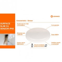 Plafoniera LED pentru exterior cu senzor de miscare Ledvance SURFACE SLIM ROUND 350, 35W, 3680 lm, lumina neutra (4000K), IP65/IK10, Ø350x55mm, Alb