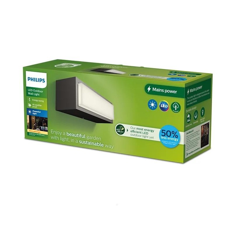 Aplica LED pentru exterior cu senzor de miscare Philips Splay, 12W, 1100 lm, lumina calda (2700K), IP44, 240x80x160mm, Antracit