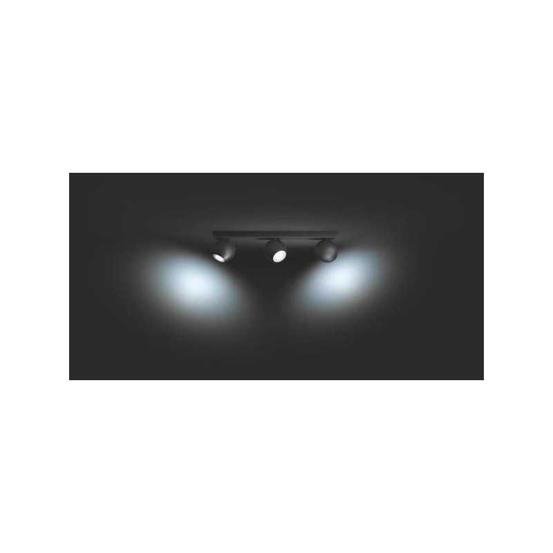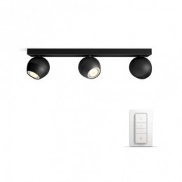 Spot LED Cvadruplu Philips Hue Buckram, Bluetooth, 4xGU10, 4x5W, 1400 lm, lumina alba (2200-6500K), IP20, 24x24x10.3cm, Metal, Negru, Intrerupator cu variator inclus