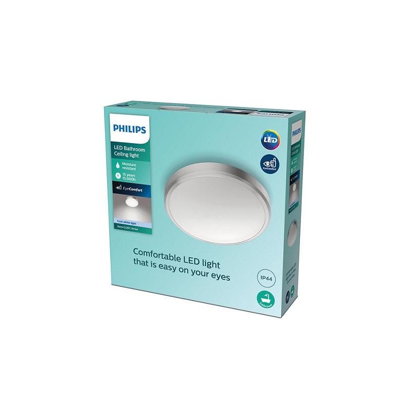 Plafoniera LED Philips Doris CL257, 6W, 600 lm, lumina calda (2700K), IP44, 22cm, Metal/Plastic, Crom