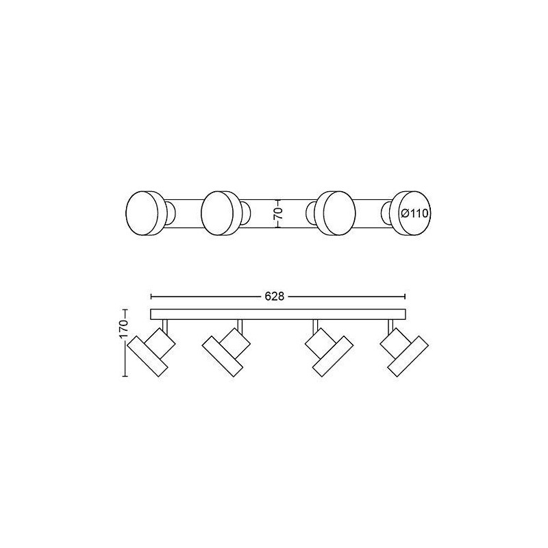 Plafoniera Trio Cross, excl. 6x E27 · max. 40W, 230V, IP20, montare plafon, nu include becul, pivotant, dimensiuni: 19x56cm, material metal, culoare negru mat;