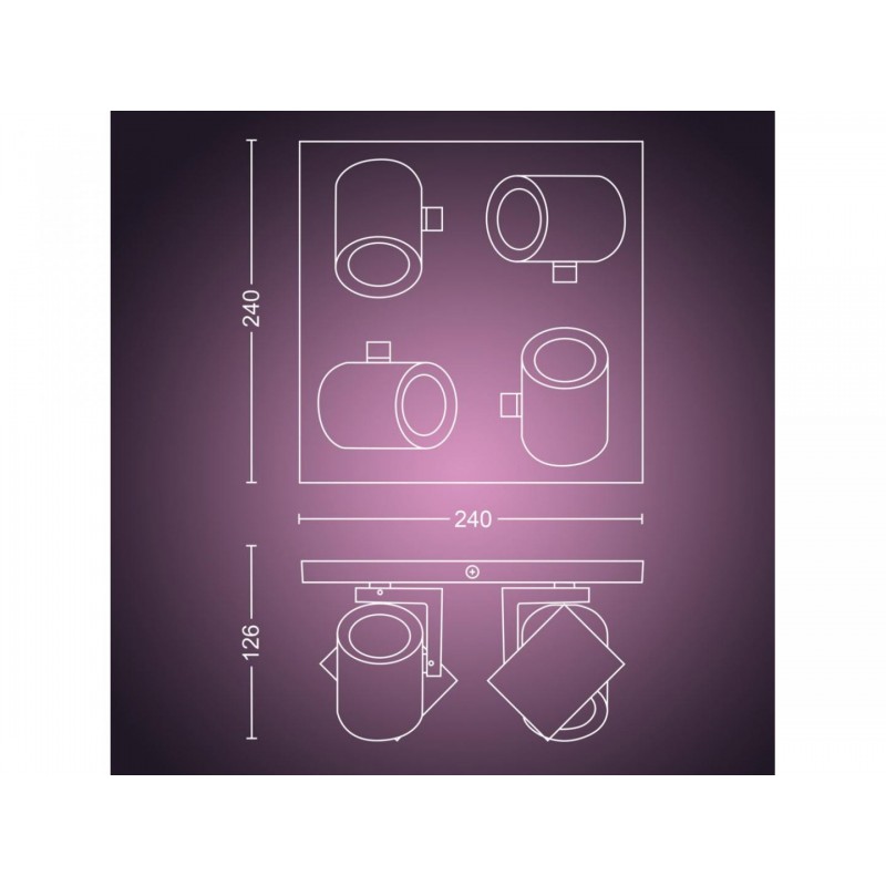 Spot LED RGB Philips Hue Fugato, Bluetooth, GU10, 5.7W, 350 lm, lumina alba si color (2000-6500K), IP20, Metal, Alb