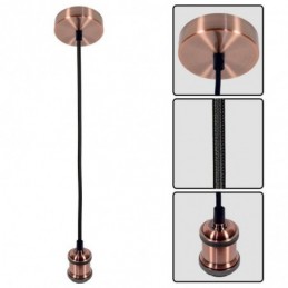 Pendul Vivalux RETRO Antique Copper, E27, max. 60W, textil/Metal, IP20, Ø100mm, cablu Negru 1m, bec neinclus