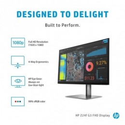 Monitor 23.8" HP Z24F G3, LED, IPS, FHD 1920x1080, 16:9, 5 ms, 300 cd/m², 1000:1 static, 178°/178°, 1x DP 1.2 out/ 1x HDMI 1.4/ 4x USB-A 3.2 Gen 1/ 1x DP 1.2 in, Swivel: ±45°; Tilt: -5 to +20°; Pivot rotation: 90°; Height adjustment: 150 mm, VESA 100x100, Black