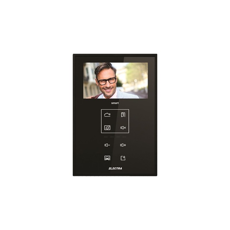 Terminal video 7” - 4 fire, 800 x 480, suprafata de STICLA de 3mm intarita chimic pe carcasa din ABS, tastatura TOUCH iluminata, functiuni principale: apel, raspuns si convorbire hands-free, acordare acces, volum reglabil cu 7 nivele si optiune