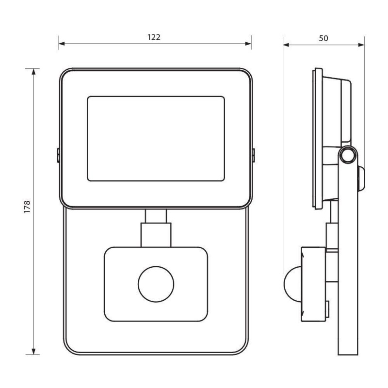 Proiector LED cu senzor de miscare Vivalux SHIFT, 30W, 230V, 2700 lm, lumina rece (6400K), 110°, IP44, 147x198x50mm, 20000h, aluminiu, -25÷+40°C, Negru