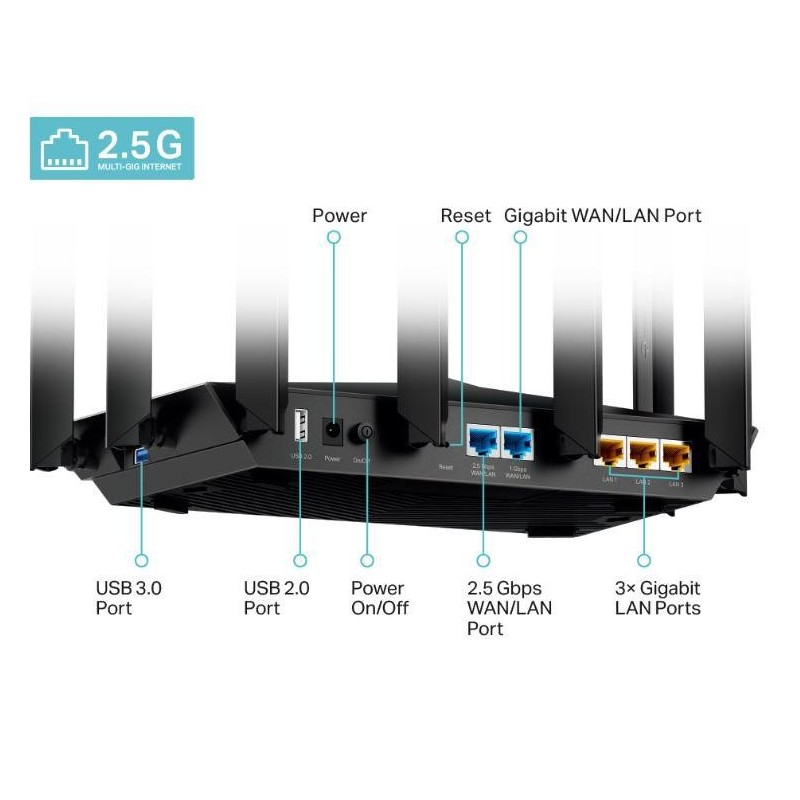 Mercusys AX3000. WAN connection type: RJ-45. Wi-Fi band: Dual-band (2.4 GHz / 5 GHz), Top Wi-Fi standard: Wi-Fi 6 (802.11ax), WLAN data transfer rate (max): 3000 Mbit/s. Ethernet LAN interface type: Gigabit Ethernet, Ethernet LAN data rates: 10,100,1000 M