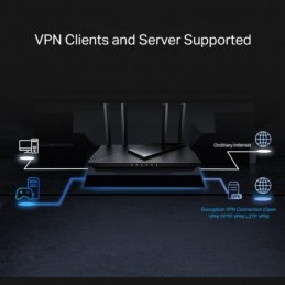 TP-Link Wireless Router, ARCHER AX55 PRO ;dual band AX3000 5 GHz: 2402 Mbps (802.11ax), 2.4 GHz: 574 Mbps(802.11ax), Standard and Protocol: IEEE 802.11ax/ac/n/a 5 GHz, IEEE 802.11ax/n/b/g 2.4 GHz, 4 x Antene Externe fixe, 1× Port WAN/LAN Gigabit de 2.5, 1