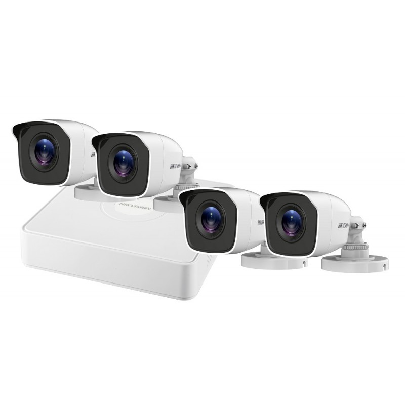 Kit de supraveghere Hikvision; Kitul contine: - DVR DS-7104HQHI-K1 x 1buc - Camera exterior DS-2CE16D0T-IRP(3.6mm) x 4buc - Cablu video+ alimentare( mufate), lungime 18,3 metri x 4 buc - Sursa de alimentare + adaptor cu 4 iesiri( pentru alimentare camer