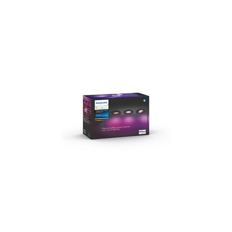 3 Spoturi LED RGB incastrate Philips Hue Xamento, Bluetooth, GU10, 3x5.7W, 1050 lm, lumina alba si color (2000-6500K), IP44, Negru