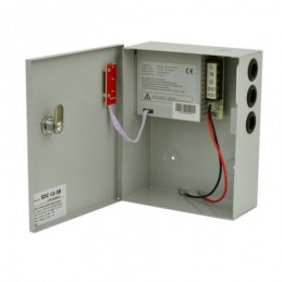 Sursa de alimentare 12V/3A, back-up - carcasa metalica, tensiune intrare: 190~265Vca, tensiune iesire: 12Vcc +/- 15% intensitate: max 3A, greutate: 1.1 kg, dimensiuni: 203x163x74mm. Loc pentru acumulator back-up 7Ah.