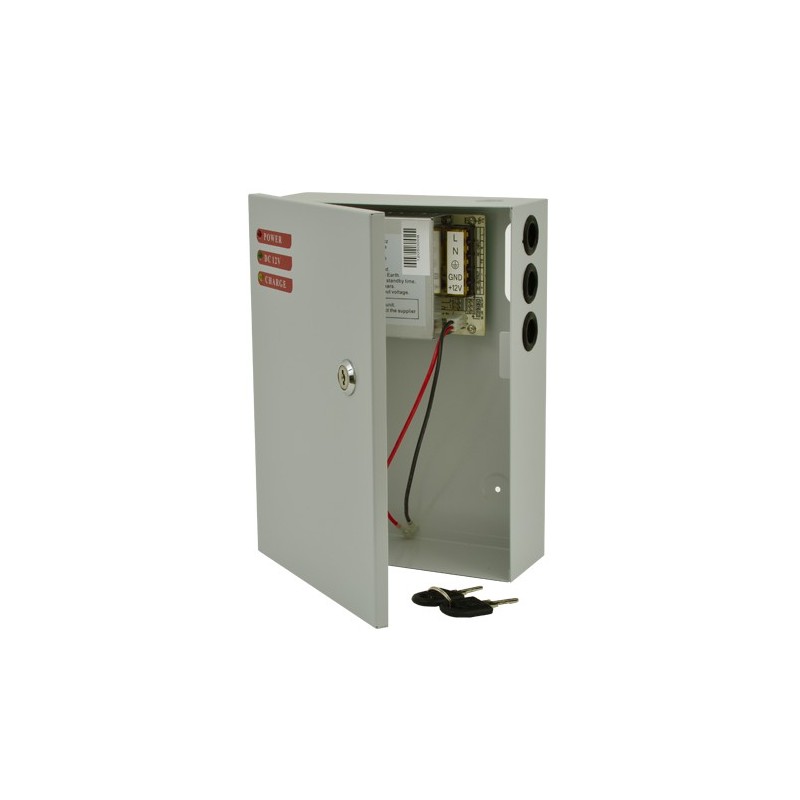 Sursa de alimentare 12V/3A, back-up - carcasa metalica, tensiune intrare: 190~265Vca, tensiune iesire: 12Vcc +/- 15% intensitate: max 3A, greutate: 1.1 kg, dimensiuni: 203x163x74mm. Loc pentru acumulator back-up 7Ah.