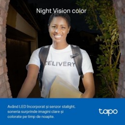 TP-Link Sonerie video smart TAPO D230S1, Senzor: 1/2.7“, Lentile F/NO: 2.1, IR pana la 7m, Rezistenta la ap: IP64, Unghi vizualizare: 160° pe diagonală, Rezolutie: 2K 5MP (2560 × 1920px), Compresie video: H.264, Microfon și difuzor încorporate, Standarde