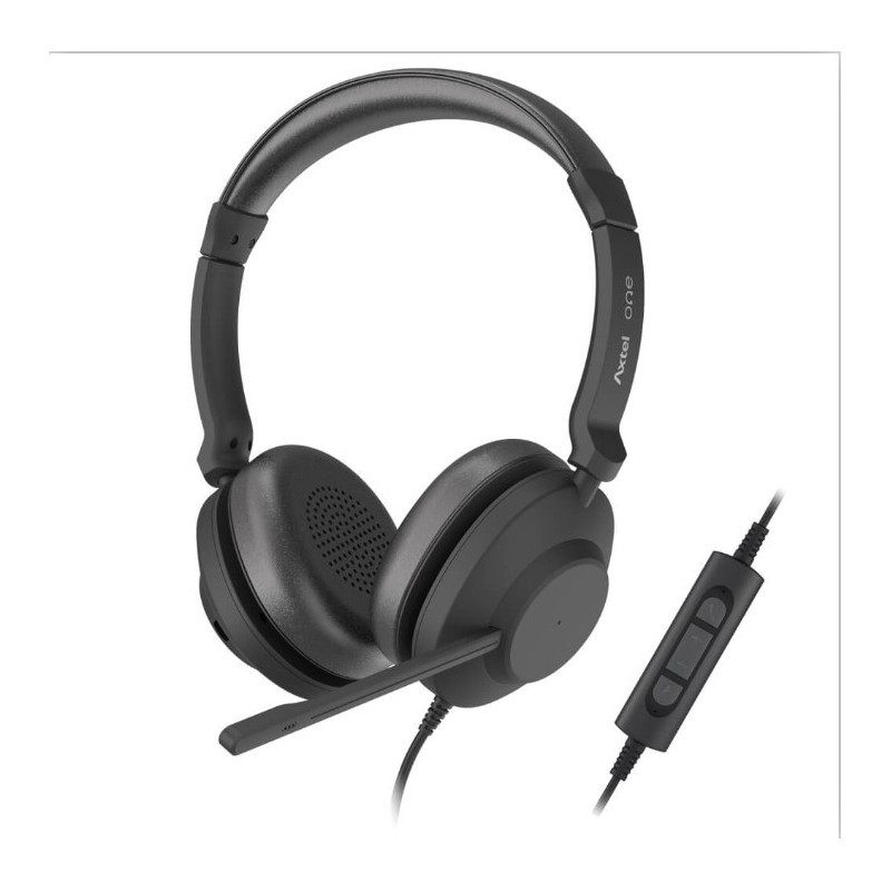HEADSET AXTEL ONE STEREO HD AXH-ONE , Corded, Headset Conectivity USB-A, USB-C / with STEREO HD . Speakert Size has 40 mm / Passive noise reduction : STRONG